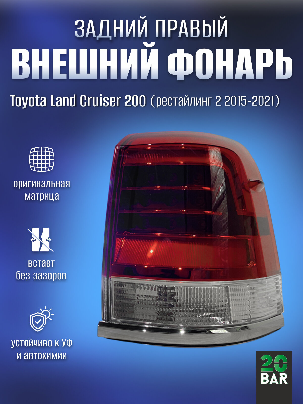 Задний правый внешний фонарь Toyota Land Cruiser 200 рестайлинг 2 2015-2021: сравнение цен, характеристики, фото, актуальное наличие и цены.