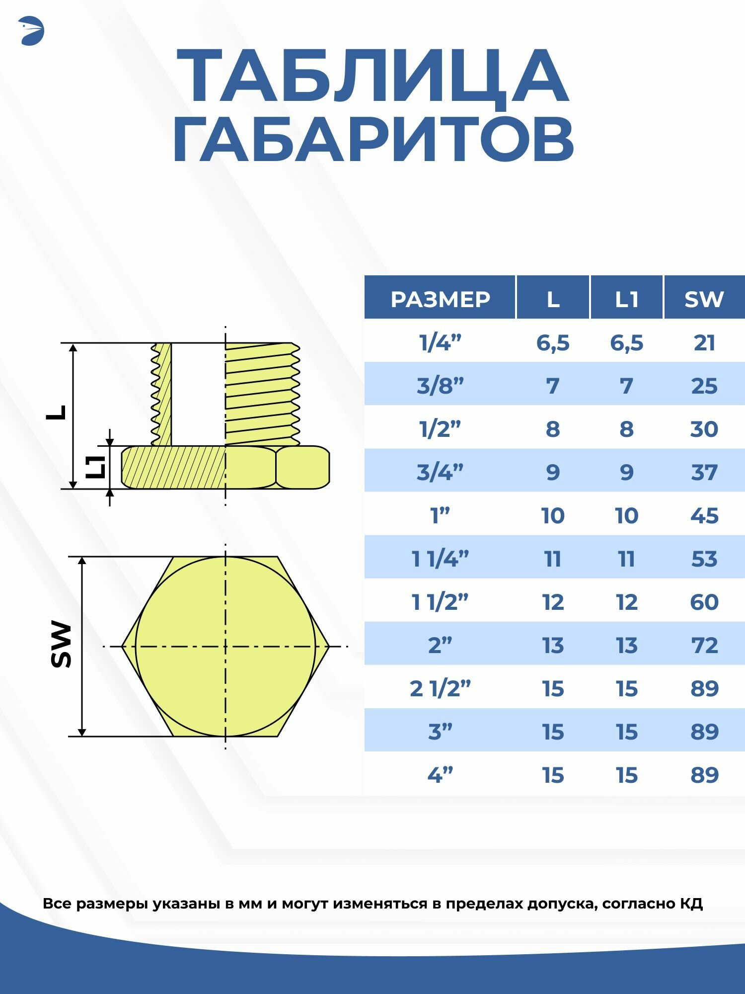 Заглушка НР стальная наружная резьба нержавеющая, AISI304 DN ДУ 25 (1″) дюйм, PN16, набор 6 шт: сравнение цен, характеристики, фото, актуальное наличие и цены.