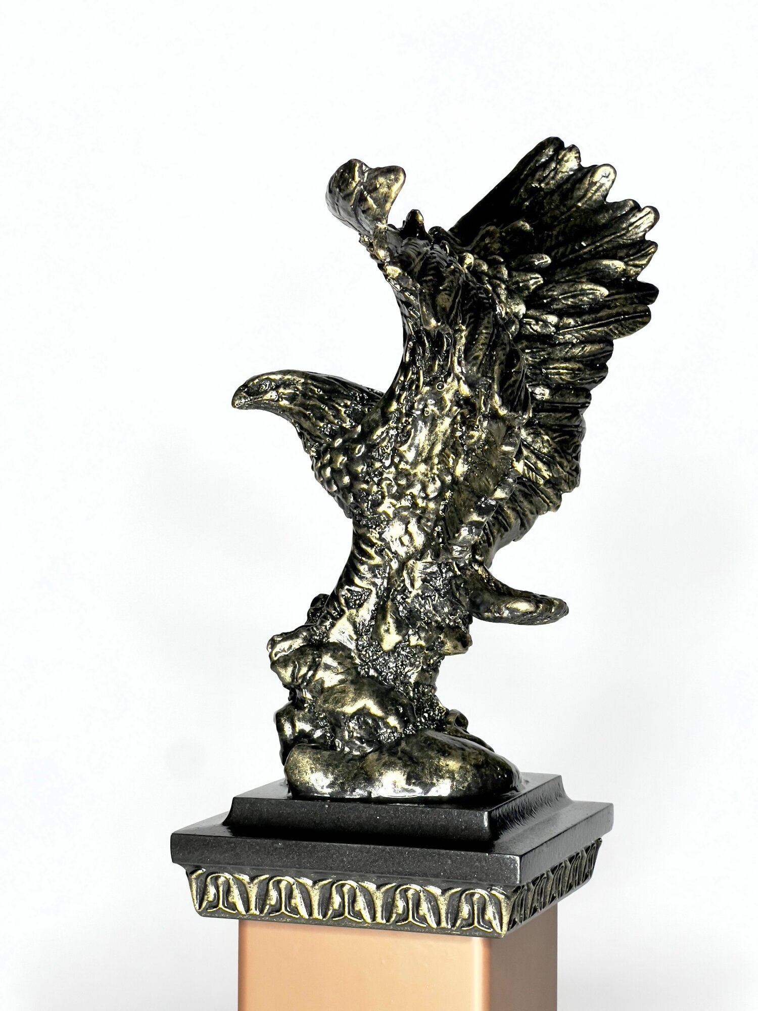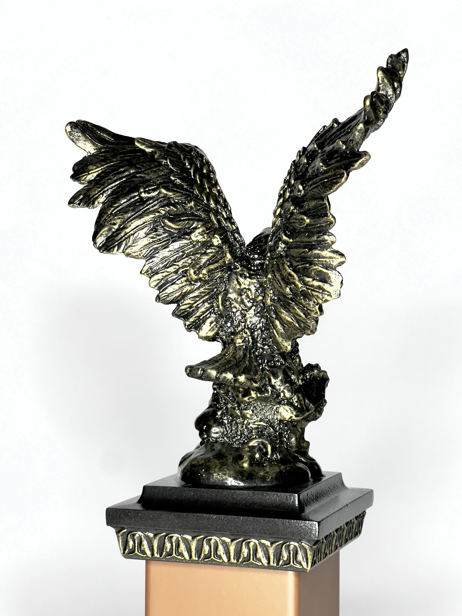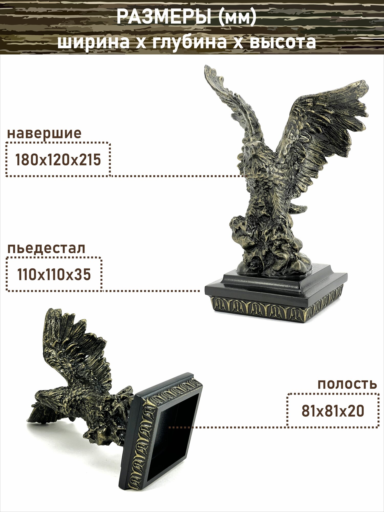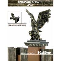 Декоративная заглушка Алмант Орел для столба 80х80мм - это новая линейка изысканных комплектующих для ограждений от зарекомендовавшего себя бренда «Навершия Finial». Принципиально новая конструкция с «юбкой» защищает столб на 100% и подходит как для металлических опор, так и для столбов из дерева и других материалов. Навершие изготовлено из искусственного камня и представляет собой альтернативу пластиковым и металлическим заглушкам для профильных труб. Область применения: столбы забора из профлиста и деревянного штакетника, садовые ограждения, как элемент ландшафтного дизайна, лестницы и балконы частных домов. Не секрет, что колпаки и крышки заборных столбов выполняют не только декоративную функцию, но и защищают столбы забора от внешних воздействий. Благодаря таким свойствам, как: высокая прочность, гидрофобность, устойчивость к перепадам температур - навершия из искусственного камня служат долгие годы. *для монтажа рекомендуем использовать клей-пену или жидкие гвозди.