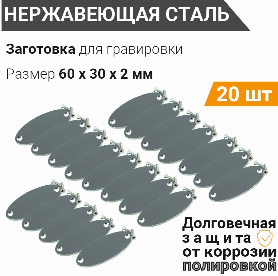 Заготовка для гравировки Шильда Овальная с 2 отверстиями 60*30 мм 20 шт, нержавеющая сталь, крепёж в комплекте: сравнение цен, характеристики, фото, актуальное наличие и цены.