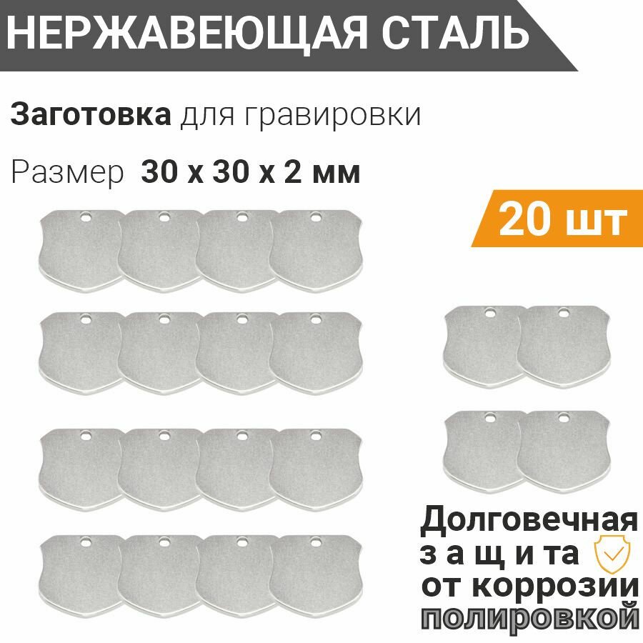 Заготовки для гравировки Щит 30х30 мм 20 шт нержавеющая сталь, толщина 2 мм: сравнение цен, характеристики, фото, актуальное наличие и цены.
