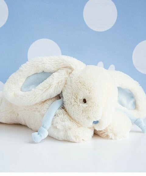 Зайчик в голубой подарочной коробке станет прекрасным подарком малышу на рождение или крестины. Кролик не имеет твердых деталей, с ним можно спать и обниматься даже самым маленьким младенцам. Заяц успокоит малыша, подарит ему нежность и подойдет в качестве подарка с первых дней жизни. Размер 20 см, предлагается в подарочной коробке.