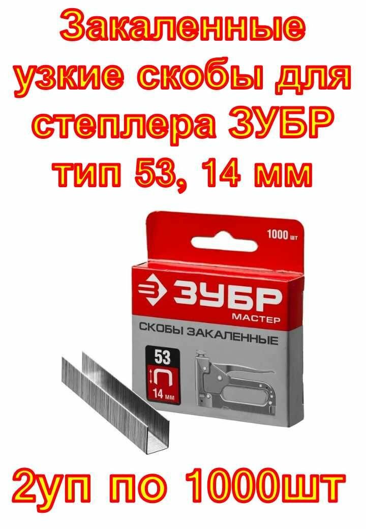 Закаленные узкие скобы для степлера ЗУБР тип 53, 14 мм