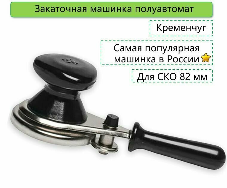 Закаточная машинка полуавтомат (Кременчуг) - легендарная закаточная машинка полуавтоматического типа. Предназначена для герметичной укупорки стеклянных банок с горловиной 82 мм жестяными крышками СКО при домашнем консервировании.