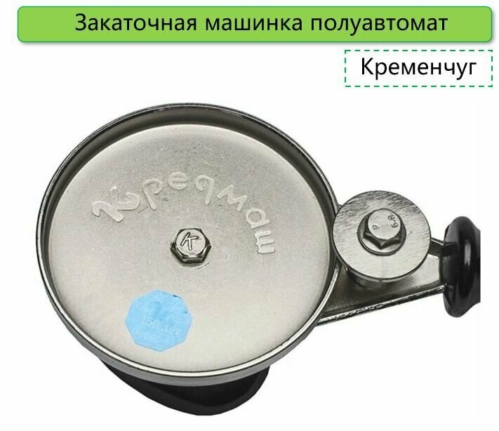 Закаточная машинка полуавтомат Кременчугского завода "Кредмаш" не пережимает и не режет крышку, не допускает сколов на банке. Надежна, долговечна и удобна в эксплуатации. Технология изготовления этой машинки сохраняется со времен СССР. При производстве основных деталей применяется дорогостоящая термообработка, что позволяет успешно использовать машинку долгие годы. Соответствует ТУ 22-1.058-31-83.