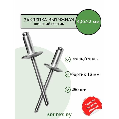 Купить Заклепка широкий бортик сталь/сталь 4,8х22 бортик 16мм Sorrex OY (250штук) с доставкой по всей России. Заклепка широкий бортик сталь/сталь 4,8х22 бортик 16мм Sorrex OY (250штук): сравнение цен, характеристики, фото, актуальное наличие и цены.