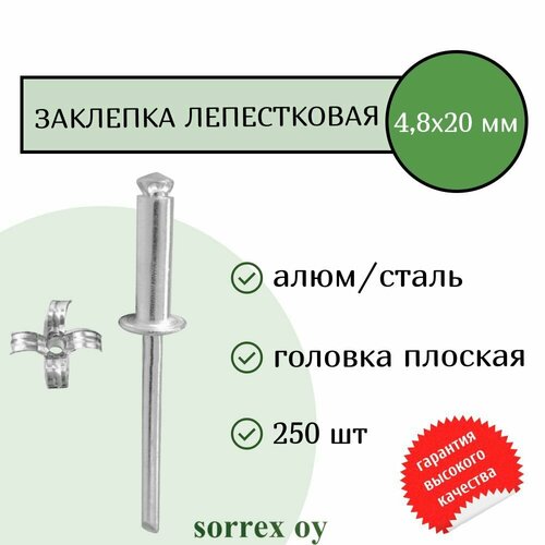 Купить Заклепка вытяжная лепестковая распорная металл алюминий/сталь 4,8х20 Sorrex OY (250штук) с доставкой по всей России. Заклепка вытяжная лепестковая распорная металл алюминий/сталь 4,8х20 Sorrex OY (250штук): сравнение цен, характеристики, фото, актуальное наличие и цены.
