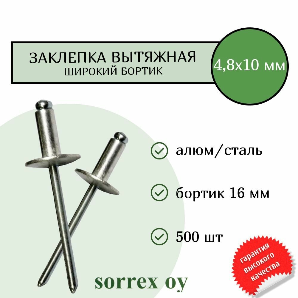 Купить Заклепка вытяжная 4,8х10 с широким бортиком шляпкой 16 мм алюминий/сталь (500 штук) Sorrex OY с доставкой по всей России. Заклепка вытяжная 4,8х10 с широким бортиком шляпкой 16 мм алюминий/сталь (500 штук) Sorrex OY: сравнение цен, характеристики, фото, актуальное наличие и цены.