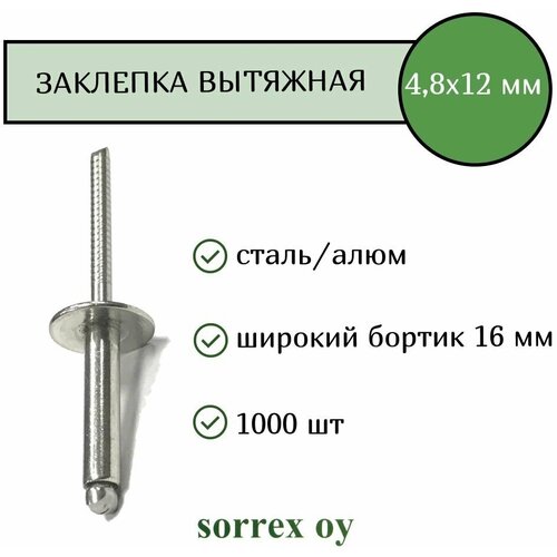 Заклепка вытяжная широкий бортик 4,8х12 бортик 16мм Sorrex OY (1000штук): сравнение цен, характеристики, фото, актуальное наличие и цены.