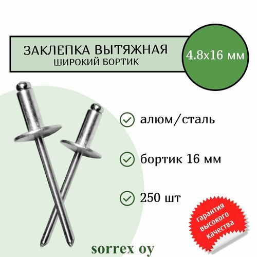 Заклепка вытяжная широкий бортик 4,8х16 бортик 16мм Sorrex OY (250штук): сравнение цен, характеристики, фото, актуальное наличие и цены.