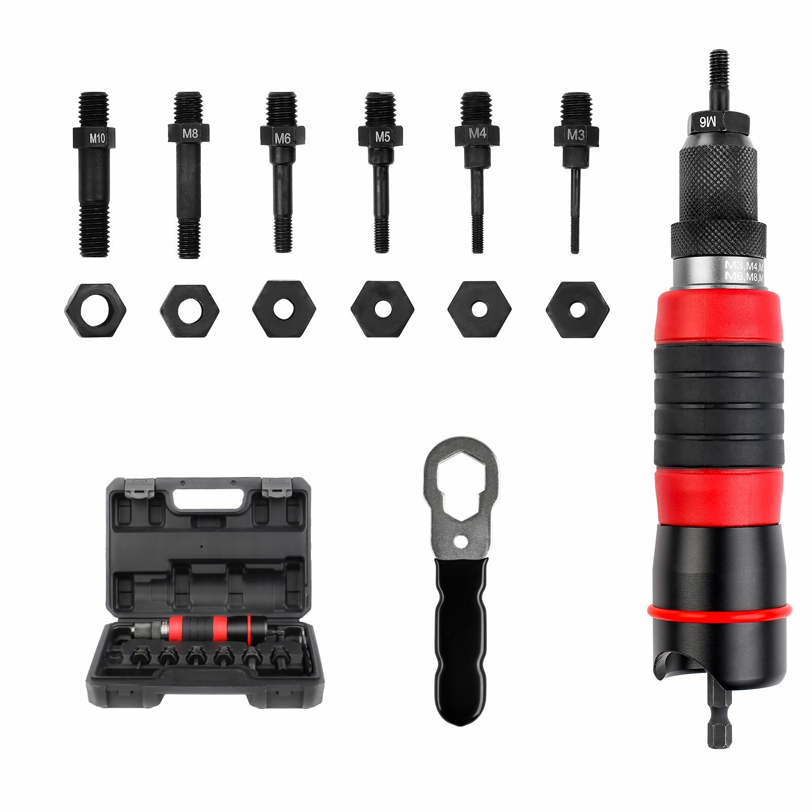 Заклепочник для резьбовых заклепок, электрический привод, Можно заменять различные типы гаек(M3/M4/M5/M6/M8/M10): сравнение цен, характеристики, фото, актуальное наличие и цены.