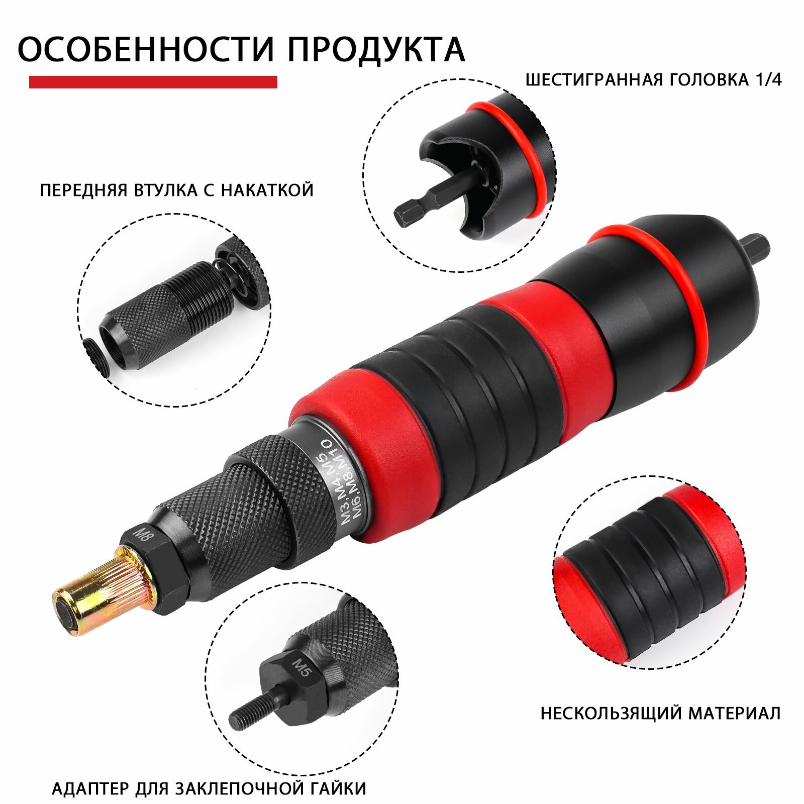Заклепочник Для Резьбовых Заклепок с различными резьбы и зажимных стержней, Применимая модель(M3 M4 M5 M6 M8 M10): сравнение цен, характеристики, фото, актуальное наличие и цены.