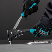 Используется с заклёпками алюминиевыми: 2,4–4,8 мм, стальными: 2,4–4,8 мм, из нержавеющей стали: 2,4–4,8 мм. Литой корпус, стальной штампованный рычаг, пластиковые рукоятки. Качественный инструмент, подходит для профессионального использования.