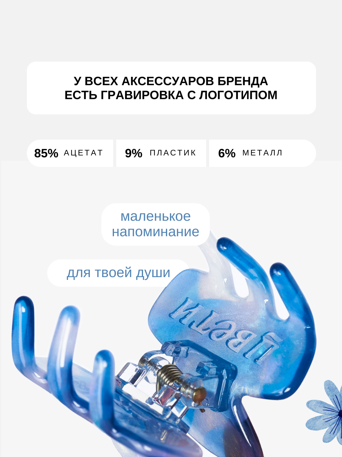 Мы позаботились о том, чтобы продукт был создан из экологически чистого материала и не используем пластик в производстве. Заколки UNIQUE отличаются от остальных своими мягкими и плавными формами, а так же уникальными текстурами. Каждый краб неповторим и имеет свой собственный узор.