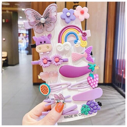 Набор заколок для маленькой принцессы! 14 детских заколок, зажимов для волос выполнены из гипоаллергенного сплава. Каждая заколка для волос выполнена в виде зверят, фруктов, леденцов, радуги или конфет. В каждом наборе Вы сможете найти как зажимы для волос, так и заколки клик-клак. Длина заколок в наборе варьирует от 3 до 6 см. Это значит, что Ваша маленькая принцесса найдет себе подходящий аксессуар в любом случае: