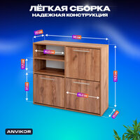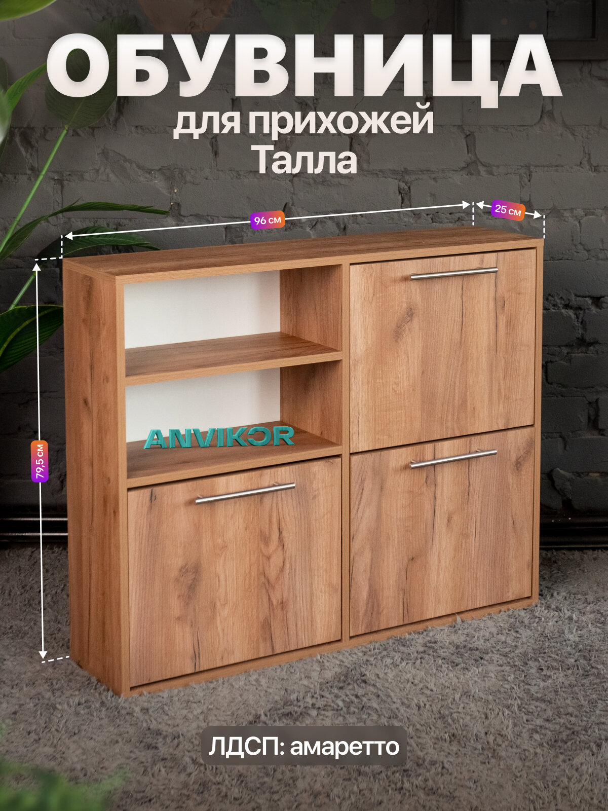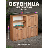Закрытая обувница-тумба с полками «Талла» — идеальное решение для рационального хранения обуви в узком коридоре, компактной прихожей или гардеробной. Надежная конструкция включает две секции с двойными откидными дверцами, секцию с распашной дверцей и секцию с двумя открытыми полками. Обувница-тумба вмещает до 12 пар обуви, а открытые полки позволяют хранить различные мелочи: ключи, сумки, зонты, чистящие средства для обуви. Эргономичная и функциональная обувница изготовлена из прочного ЛДСП. Удобный механизм открывания ящиков, крепкие петли и хромированные ручки гарантируют надежность и комфорт от использования. Пластиковые протекторы обеспечивают защиту пола от вмятин и царапин. Качественные и экологичные материалы, а также стильный современный дизайн делают закрытую обувницу подходящей для любого интерьера дома, дачи, офиса, салона красоты, медицинского или косметологического кабинетов. С закрытой обувницей в прихожую можно организовать безупречный порядок и сохранить обувь в отличном состоянии, сэкономив пространство и дополнив его интересным акцентом.