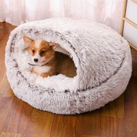 Купить Закрытая лежанка домик для кошек L 65 см (внутри — МЕХ, цвет капучино) / лежанка сплюшка для сфинкса с доставкой по всей России.