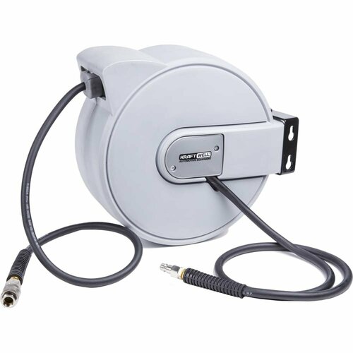 Катушка для раздачи воздуха/воды KraftWell закрытая, пластиковая, 14 м KRW1731. C8 используется в автосервисах для удобного питания пневмоинструмента. Корпус катушки изготовлен из ударопрочного пластика высокого качества. Модель оснащена поворотным кронштейном, благодаря чему может поворачиваться на 180 градусов. Ограничитель шланга не дает ему полностью сматываться в катушку после окончания работы. Данная модель подходит и для применения на автомойках.