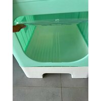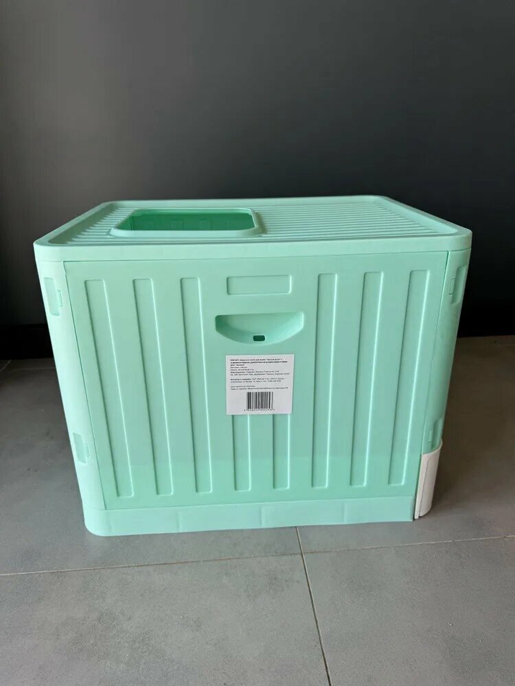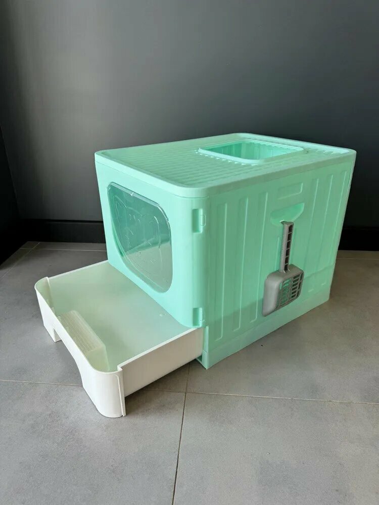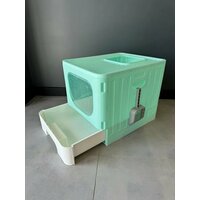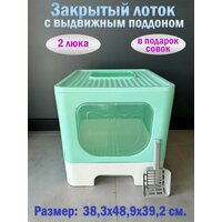 Закрытый лоток для кошек «Чистый котик», 38.3×48.9×39.2 см, выдвижной поддон, люк-выход, совок, прозрачные съемные двери, бело-зеленый: сравнение цен, характеристики, фото, актуальное наличие и цены.