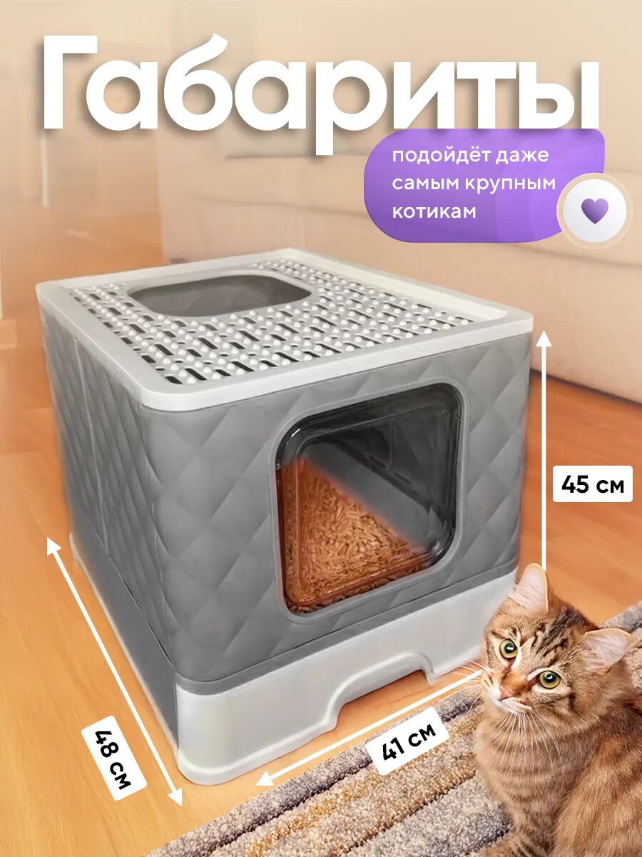 Купить Закрытый лоток для кошек, туалет-домик для кошек большой, закрытый с дверцей 48*41*45 см, разборный, серый с доставкой по всей России. Закрытый лоток для кошек, туалет-домик для кошек большой, закрытый с дверцей 48*41*45 см, разборный, серый: сравнение цен, характеристики, фото, актуальное наличие и цены.