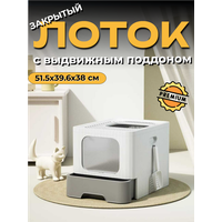 Закрытый лоток для кошек, туалет-домик для кошек большой закрытый с дверцей 51.5*39.6*38см, разборный, серо-белый: сравнение цен, характеристики, фото, актуальное наличие и цены.
