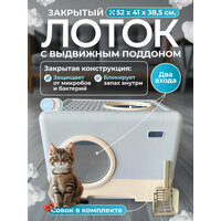 Закрытый лоток (туалет) для кошек, 52х41х38.5 см, выдвижной поддон, люк-выход, совок, прозрачные съемные двери, синий: сравнение цен, характеристики, фото, актуальное наличие и цены.