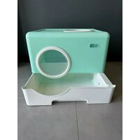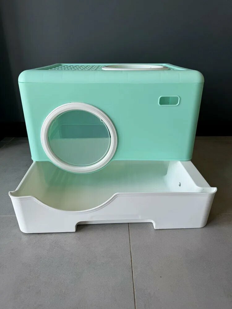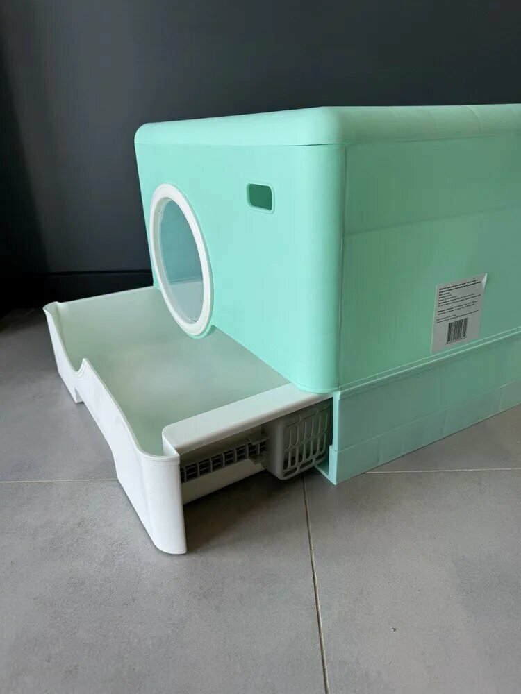 Закрытый лоток (туалет) для кошек «Чистый котик», 52х41х38.5 см, выдвижной поддон, люк-выход, совок, прозрачные съемные двери, бело-зеленый: сравнение цен, характеристики, фото, актуальное наличие и цены.