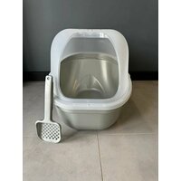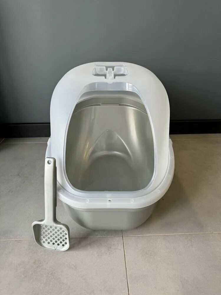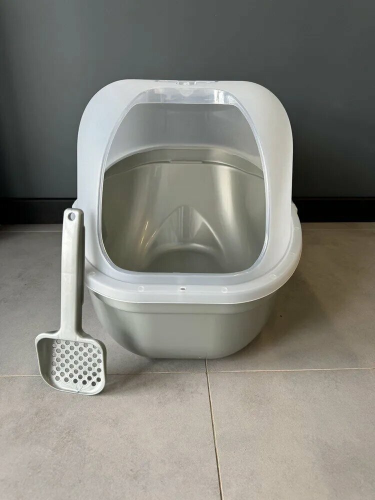 Закрытый лоток (туалет) для кошек «Чистый котик», 61×41.5×41 см, на защелках, совок, ручка, без двери, серый: сравнение цен, характеристики, фото, актуальное наличие и цены.