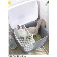 Купить Закрытый лоток-туалет для кошек с откидной крышкой, секцией решеткой для чистоты лапок и совком «Чистый Котик» 57,5х44х44 см., серый с доставкой по всей России.