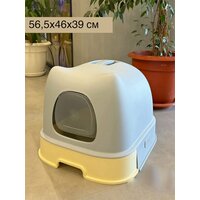 Закрытый туалет для кошек «Чистый котик», с выдвижным поддоном и совком, облачно голубой, пластик 56.5*46*39 см: сравнение цен, характеристики, фото, актуальное наличие и цены.