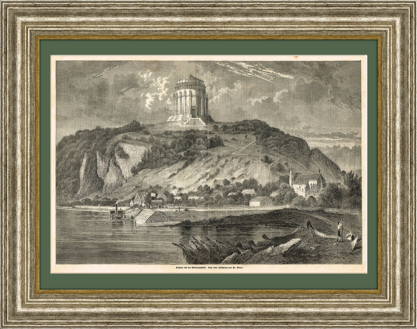 Купить Зал Освобождения в Германии: к 50-летию Битвы народов под Лейпцигом, старинная гравюра, 1863 г с доставкой по всей России.