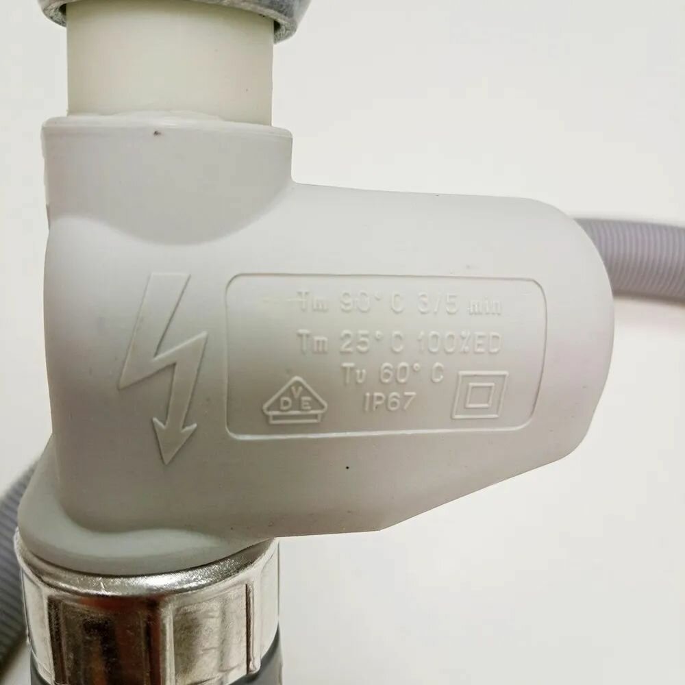 Заливной шланг AquaStopЗаливной шланг для посудомоечной машины с системой аквастоп (защита от протечек). Подходит к большинству моделей: Midea Мидея, Hansa, Indesit, Whirlpool, Ariston, Hotpoint, IKEA, Bauknecht, Gorenje, SMEG, Beko, Blomberg, Samsung Самсунг, LG, Kuppersberg, Ginzzu, Candy, DEXP, Weissgauff, Korting, Maunfeld и других. Общая длина шланга с аква стоп 2 метра. Универсальный шланг Aquastop имеет следующие параметры: TYPE 100390.88, 220-240 V, 50-60 Hz, 6VA, 3.5 L/min, max 10 bar. Внутренний диаметр водяной трубки 10 мм. Подходит на замену для большинства посудомоек. Подбирается обычно по параметрам и подключению. Производство ELTEK Италия.