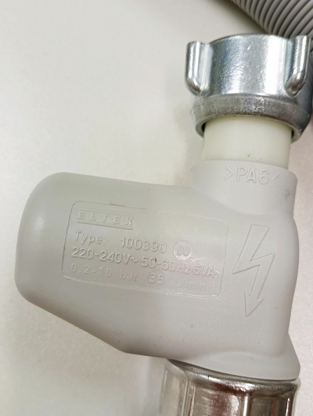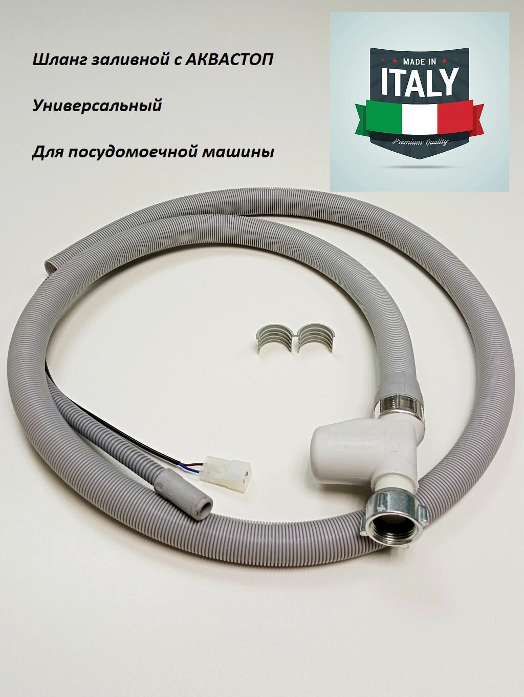 Заливной шланг для посудомоечной машины с системой аквастоп (защита от протечек). Подходит к большинству моделей: Midea Мидея, Hansa, Indesit, Whirlpool, Ariston, Hotpoint, IKEA, Bauknecht, Gorenje, SMEG, Beko, Blomberg, Samsung Самсунг, LG, Kuppersberg, Ginzzu, Candy, DEXP, Weissgauff, Korting, Maunfeld и других. Общая длина шланга с аква стоп 2 метра. Универсальный шланг Aquastop имеет следующие параметры: TYPE 100390.88, 220-240 V, 50-60 Hz, 6VA, 3.5 L/min, max 10 bar. Внутренний диаметр водяной трубки 10 мм. Подходит на замену для большинства посудомоек. Подбирается обычно по параметрам и подключению. Производство ELTEK Италия.