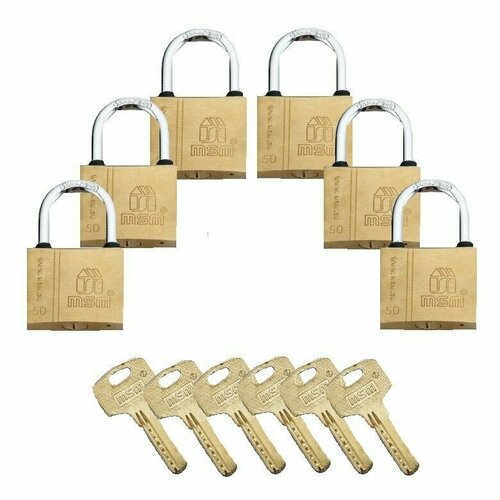 Купить Замки навесные под один ключ TB1-AK-50 MSM мастер-ключ (6 замков + 6 ключей) латунь с доставкой по всей России.