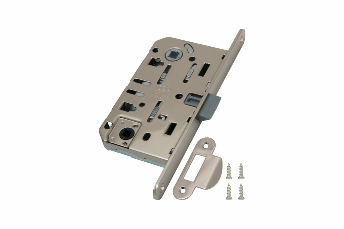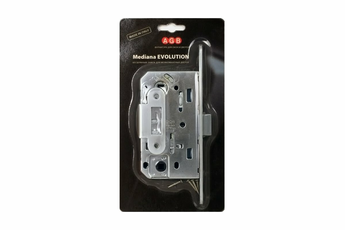 Замок врезной бесшумный B01102.50.34.567 с защелкой WC серии MEDIANA EVOLUTION предназначен для установки в межкомнатные двери. В комплектацию входит ответная планка B01000.13.34 короткая с загнутым язычком. Замок подходит для левых и правых дверей. Более тихий замок благодаря новой конструкции и новым внутренним компонентам. Новая защищенная патентом система поворота защелки. Цвет: матовый хром. Упаковка: блистер.