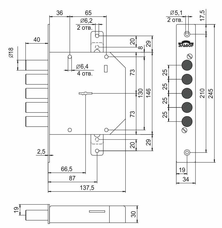Удаление ключевого отверстия составляет 66.5 мм, что позволяет установить замок в двери с различными межосевыми расстояниями.