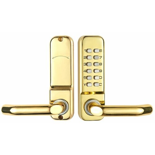 Врезной механический кодовый дверной замок SAFEBURG MECH-2009A GOLD легок в установке и использовании, открывается без ключа.