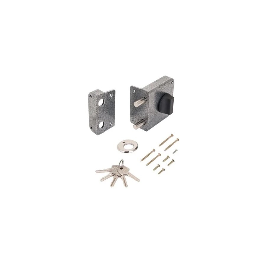 Замок накладной цилиндровый с вертушкой. Предназначен для установки на деревянные двери. Два засова круглого сечения d=13мм с максимальным вылетом 28 мм. Удаление ключевого отверстия - 60 мм. Габариты замка - 100х110х55 мм. Комплектация - 5 ключей, запорная планка, накладка. Механизм замка под англ. ключ, идет совместно с корпусом. Закрывание и открывание замка изнутри производится вертушкой, снаружи ключом. Совместим по посадочным размерам с замками ЗН1-3-2Fort, ЗН1-3-3Fort+ Петрозаводск.