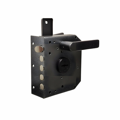 Замок накладной с фалевой защелкой, внутренней задвижкой, 8-мисувальдный блокирующий механизм сейфового типа. Замок сертифицирован 3 классом ГОСТ 5089-2003, сохраняет работоспособность после попадания в скважину посторонних предметов. Запирание двери обеспечивает повышенную сопротивляемость к взлому и высокую степень защиты. Толщина корпуса замка 24 мм. Запирание поворотом ключа, обеспечивает ригель, имеющий 3 пальца, диаметром 17 мм, с вылетом 42 мм. Защелка обеспечивает фиксацию двери и приводится в действие ручкой.