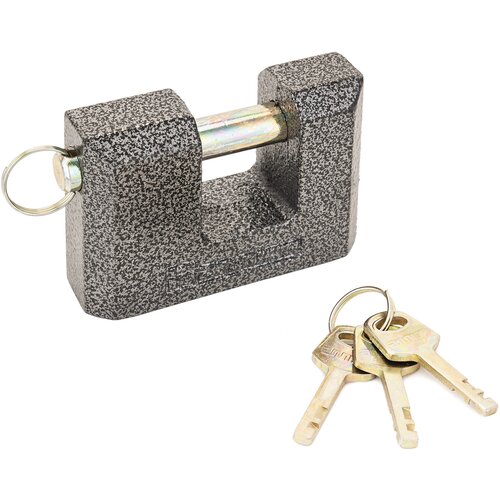 - Прямая дужка и корпус, надежно защищающий дужку от перепиливания и взлома ломом.