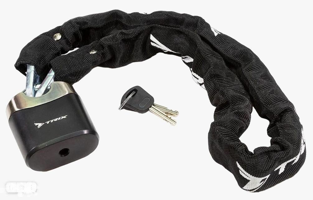 Купить Замок противоугонный TRIX, цепь, навесной замок, с ключами, 8х900мм, в тканевой оплетке, стальной, черный с доставкой по всей России. Замок противоугонный TRIX, цепь, навесной замок, с ключами, 8х900мм, в тканевой оплетке, стальной, черный: сравнение цен, характеристики, фото, актуальное наличие и цены.
