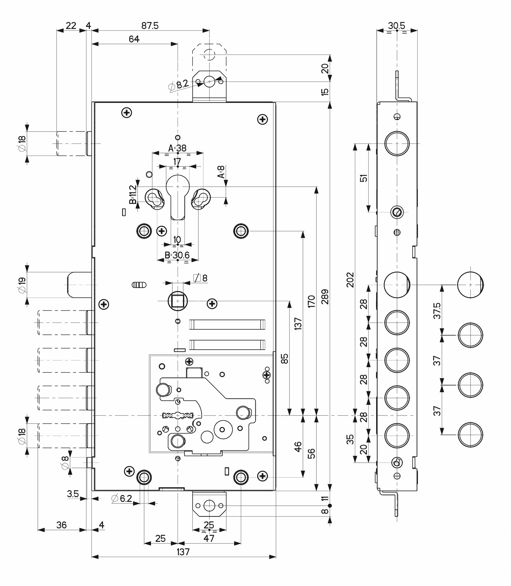 Замок врезной двухсистемный Mottura 54. J919/37 My Key — Правый