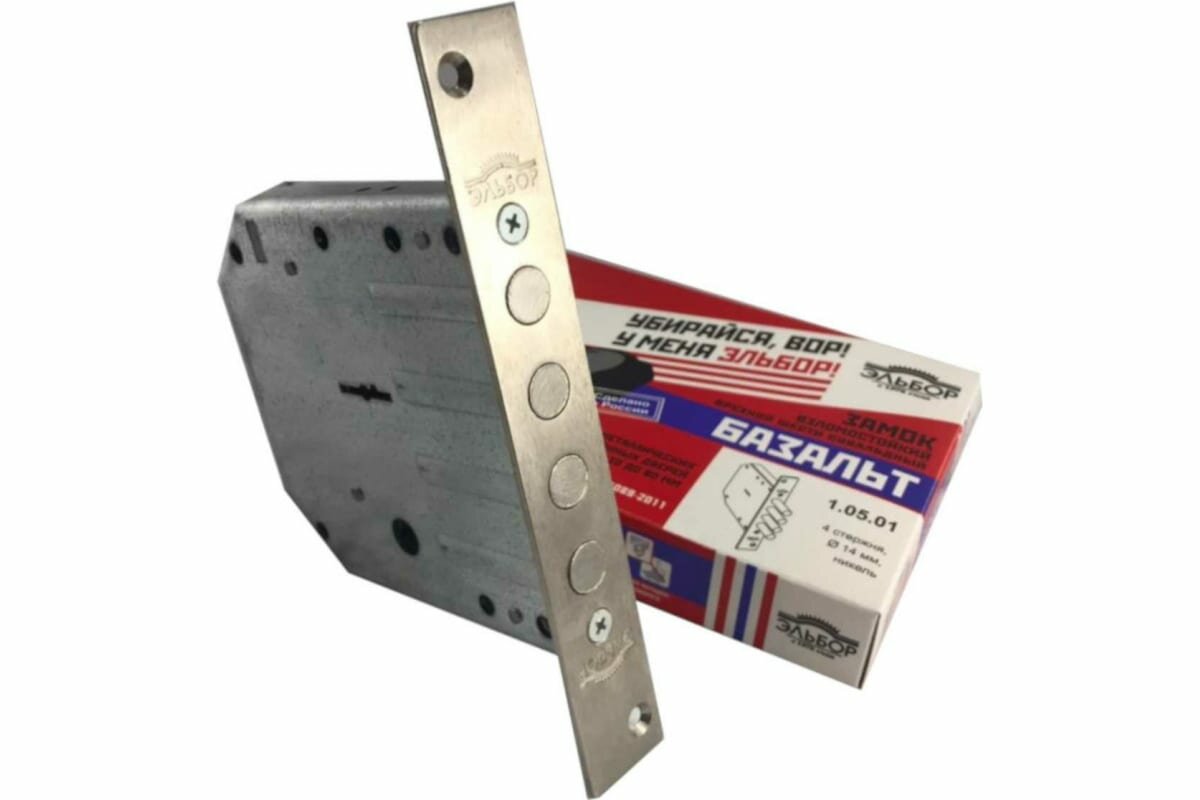 Врезной замок Эльбор 1.05.01 серии базальт - это качественный замок для деревянных и металлических входных и межкомнатных дверях, а также для различных ящичков и сейфов, который обладает высокой надежностью и прочностью, а также обеспечивает желаемый уровень безопасности вашей двери. Также подойдет для калитки и гаража. Этот замок врезной сувальдный отличается простотой установки и надежной защитой от несанкционированного доступа. Замок врезной четырехригельный универсальный, то есть подходит для дверей правого и левого открывания. Данный замок для дверей обладает 4-х ригельной конструкцией, которая повышает его силу и жесткость, а также обладает усиленной защитой замка от взлома. Важным преимуществом замка врезного для дверей является то, что он оснащен сувальдным механизмом, который обеспечивает дополнительную защиту от проникновения злоумышленников. Этот замок врезной сувальдный отличается высокой качественной сборкой и материалами, которые гарантируют его надежность и долговечность. Он легко монтируется в дверь и обеспечивает надежную защиту от внешних воздействий. Он имеет высокую степень секретности и позволяет надежно защищать входную дверь. Врезной замок Эльбор Базальт 1.05.01 является 6-сувальдным запирающим устройством, соответствующим металлическим дверям, обладающим минимальной толщиной для установки, равной 30-ти мм. Запорное устройство может отличаться левым либо правым вариантом открывания, следовательно, отличается универсальным исполнением. Установка замков Эльбор Базальт 1.05.01 осуществляется на входных дверях любого типа, и очень популярна благодаря защите, связанной со высверливанием, взломом, выдавливанием, спиливанием, а также уникальным посадочным размерам. Замок Elbor Базальт 1.05.01 отличается следующими характеристиками: 6-сувальдным механизмом секретности; 1,5 млн. количеством кодовых комбинаций; 4-мя ригелями; диаметром ригелей, равным 14- мм; выходом ригелей, равным 40-ка мм; универсальным типом закрывания; удалением ключевого отверстия, равным 68-ми мм. Если вы ищете качественный, долговечный и надежный замок как для металлических, так и для деревянных дверей, который обеспечит вашу безопасность и надежную защиту от несанкционированного доступа, то замок врезной на дверь Эльбор (Elbor) 1.05.01 базальт - это идеальный выбор для тех, кто желает надежно защитить свой дом или офис, а также загородный дом или коттедж от проникновения злоумышленников. Приятных покупок!
