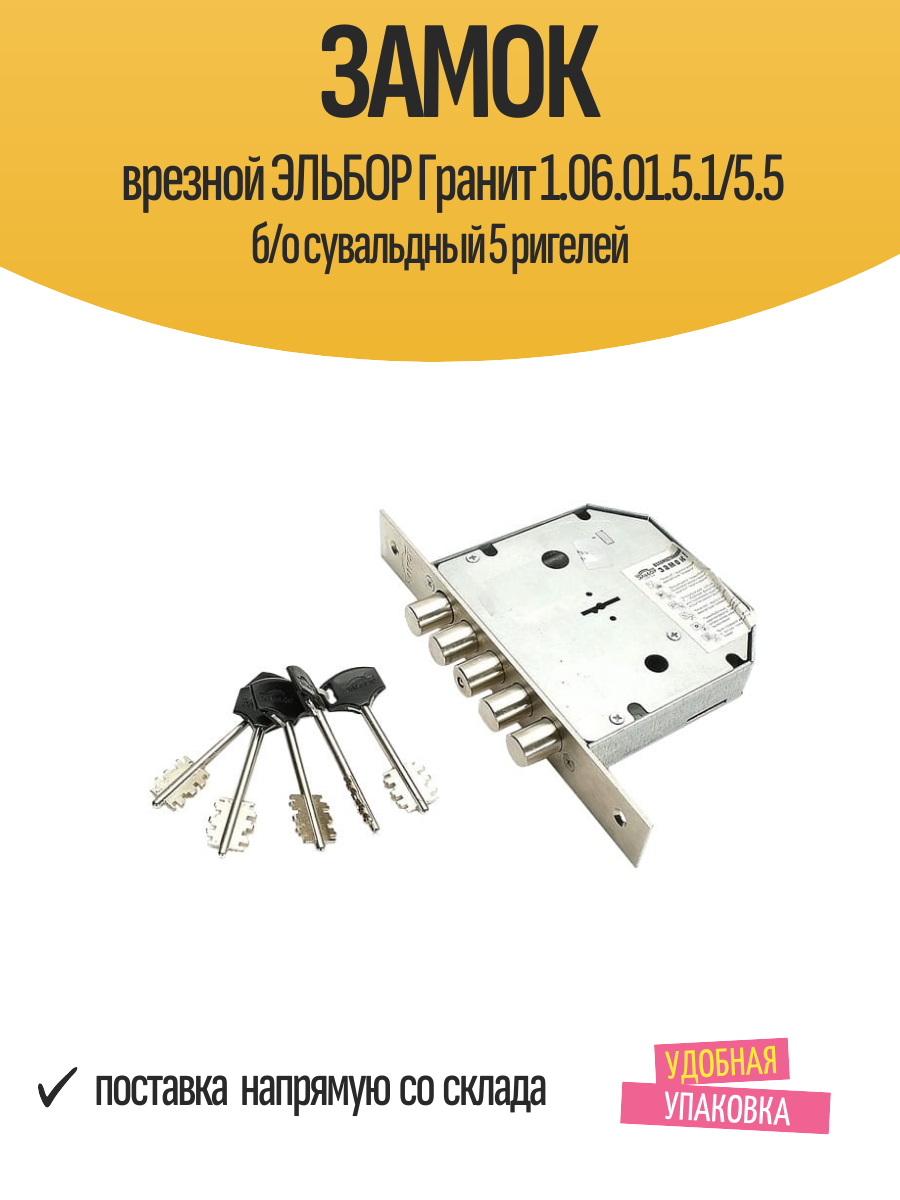 Купить Замок врезной эльбор Гранит 1.06.01.5.1/5.5 б/о сувальдный 5 ригелей с доставкой по всей России. Замок врезной эльбор Гранит 1.06.01.5.1/5.5 б/о сувальдный 5 ригелей: сравнение цен, характеристики, фото, актуальное наличие и цены.