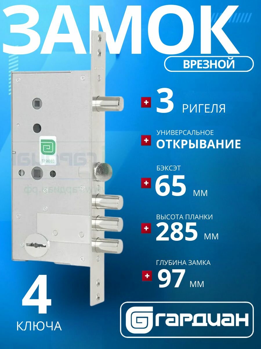 Замок врезной гардиан 50.15 сувальдный с защелкой и задвижкой (стандартный ключ)/межосевое расстояние: 77 мм + 74 мм/удаление ключевого отверстия: 65 мм: сравнение цен, характеристики, фото, актуальное наличие и цены.