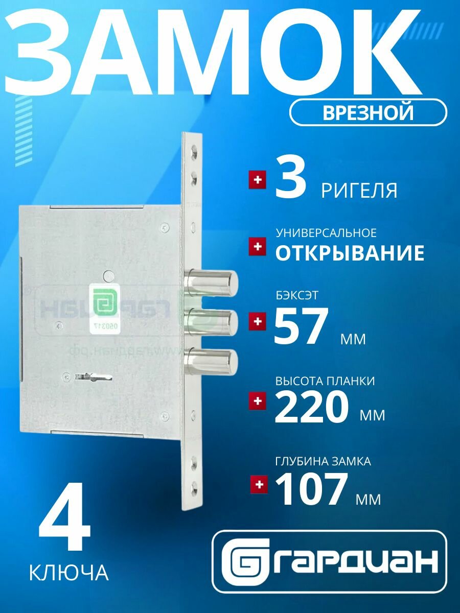 Замок врезной гардиан 60.01 сувальдный (стандартный ключ)/удаление ключевого отверстия: 57 мм/ для входных металлических дверей, калиток, шкафов и сейфов: сравнение цен, характеристики, фото, актуальное наличие и цены.