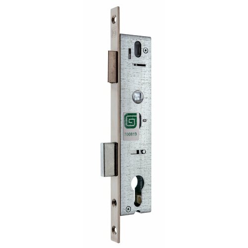 Замок врезной Гардиан Profi 25.11.16 устанавливается на алюминиевые, пластиковые и деревянные двери. Оснащен защелкой. Переворот ее для правильной установки производится без разбора самой конструкции.