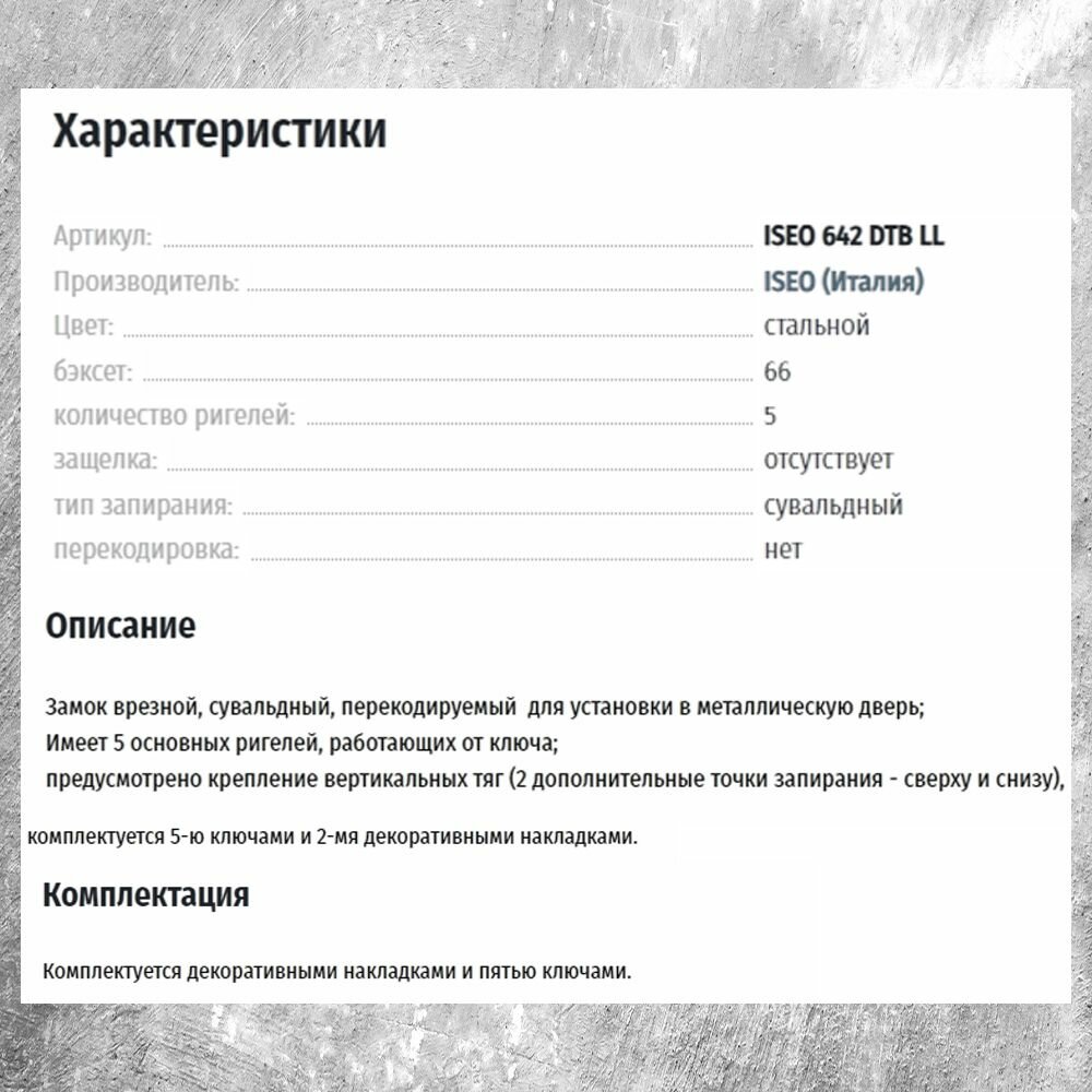 Купить Замок врезной «ISEO» 642 DTB LL сувальдный без защёлки с перекодировкой, фурнитура для дверей с доставкой по всей России. Замок врезной «ISEO» 642 DTB LL сувальдный без защёлки с перекодировкой, фурнитура для дверей: сравнение цен, характеристики, фото, актуальное наличие и цены.