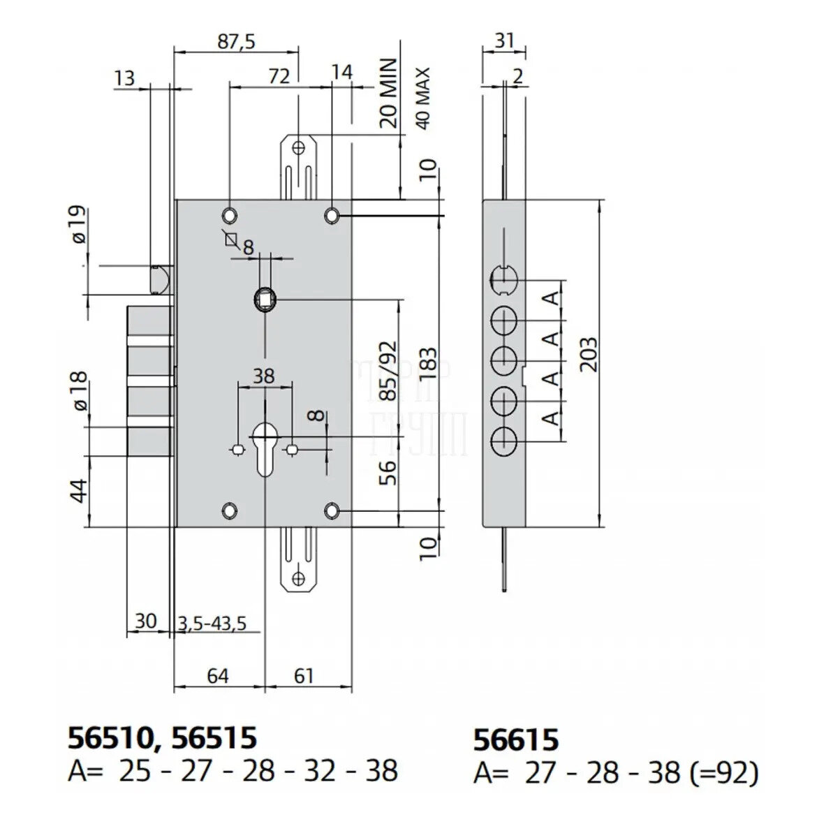Купить Замок врезной механический цилиндровый CISA 56505.48.0 никель с доставкой по всей России.