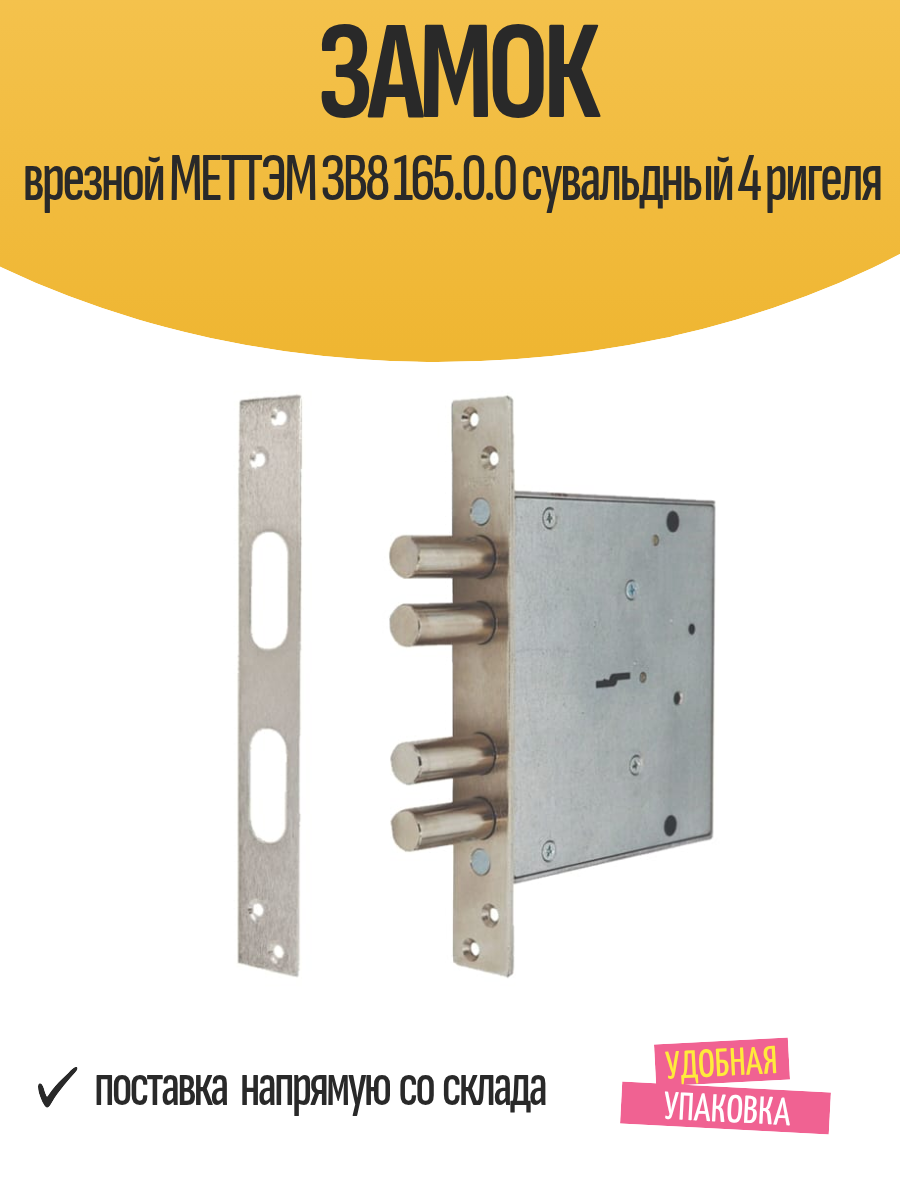 | Дополнительная информация | Замок врезной МЕТТЭМ ЗВ8 165.0.0 стальной, сувальдный, 4 ригеля |